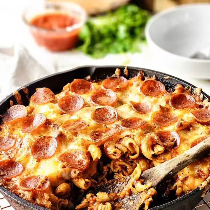 All the flavors of your favorite pizza in a cheesy, bubbly pasta bake the whole family will love.