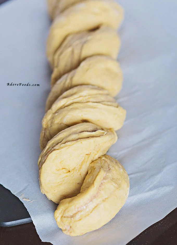 The dough is really easy to work with and you have to let it sit just for a hour and a half. It doesn’t require a lot of ingredients, just pumpkin puree (I used The Organic Pumpkin Puree), butter, flour, sugar, dry yeast and of course cinnamon and nutmeg.