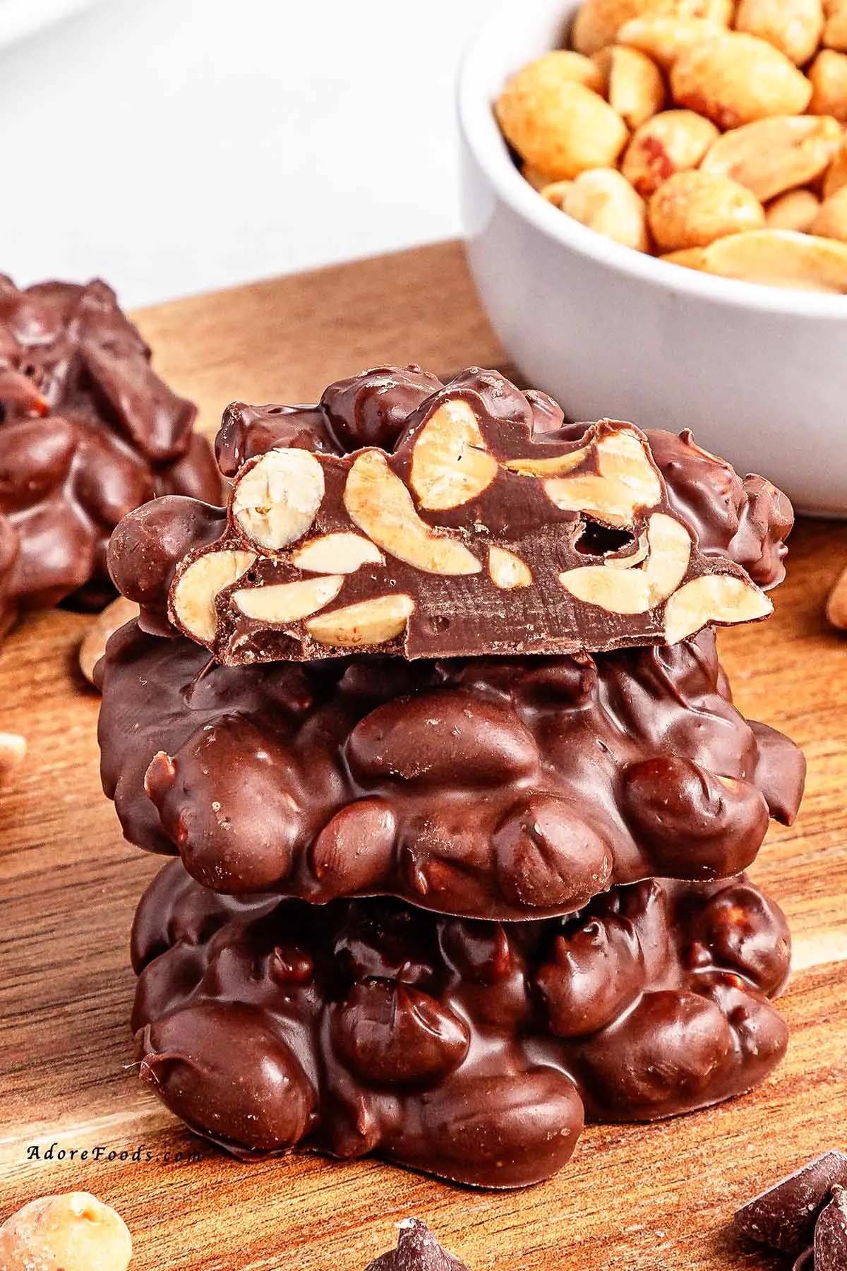 Mix thoroughly: Once the chocolate is completely smooth, turn off the slow cooker. Stir to make sure every peanut is coated evenly.