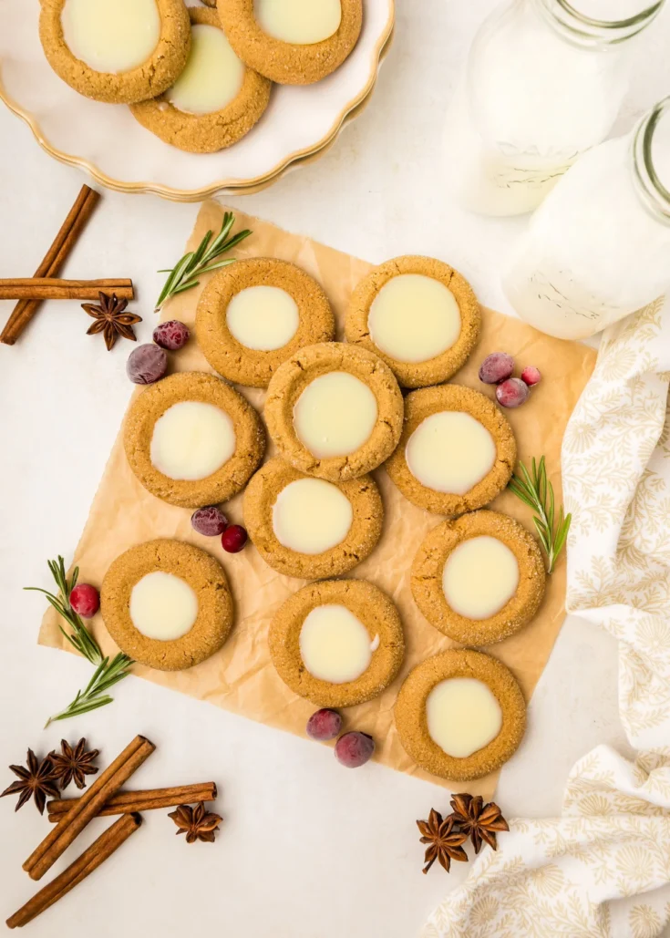Gingerbread Thumbprint Cookies are a delicious holiday cookie perfect for after Thanksgiving dinner or to include on this year’s Christmas cookie platter. These cookies feature a delicious gingerbread and molasses cookie with a decadent white chocolate filling.