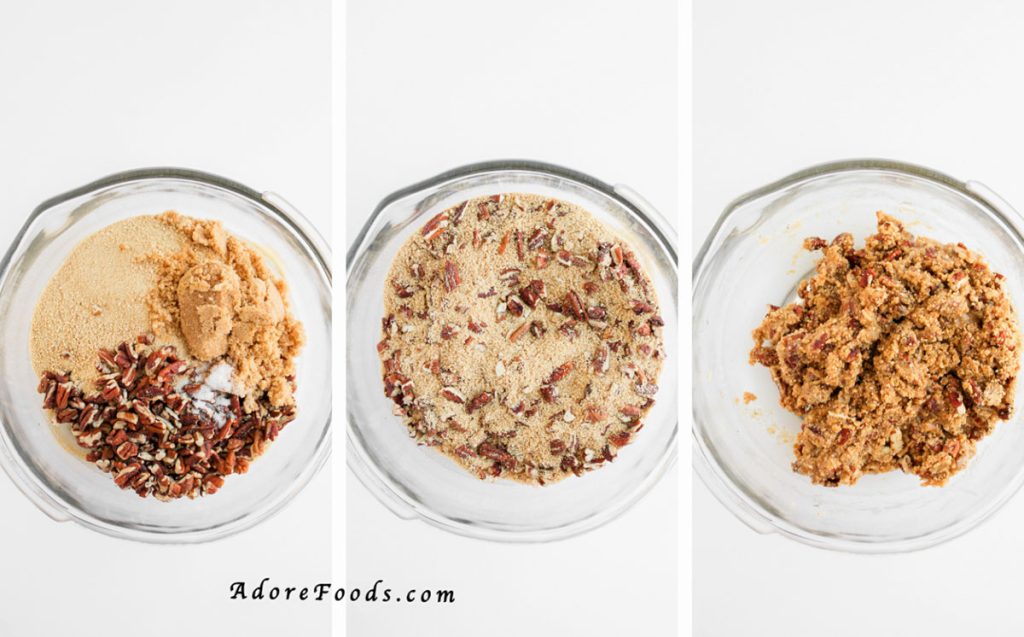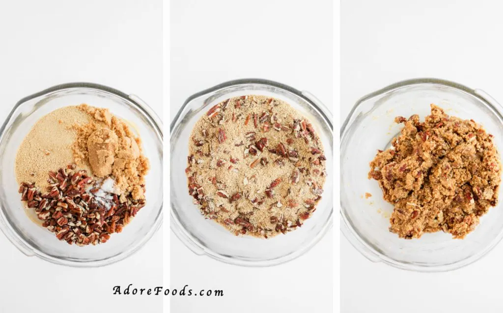 Prepare the mixture: In a large mixing bowl, combine chopped pecans, graham cracker crumbs, brown sugar, and salt. Stir until evenly blended.