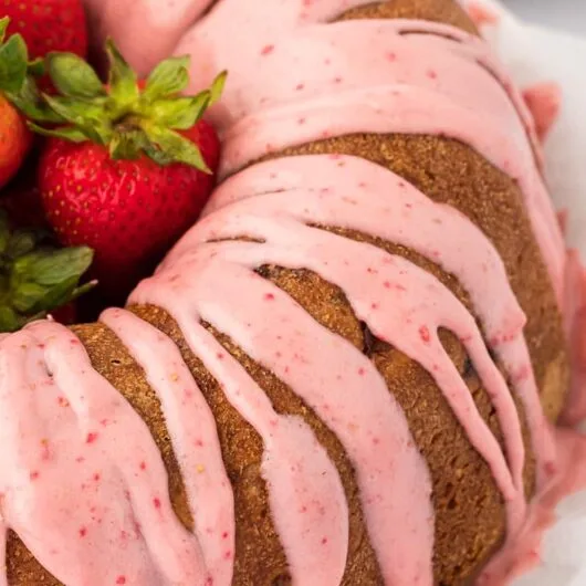 View Recipe HereA fresh strawberry pound cake recipe made with sour cream so it is extra moist! Then drizzled with a strawberry cream cheese glaze made with a secret ingredient!