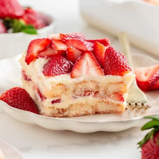 View Recipe HereStrawberry tiramisu is an easy to make no-bake summer dessert made with classic ladyfinger cookies, then layered with creamy mascarpone and fresh strawberries!
