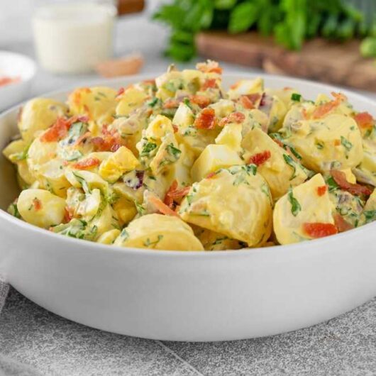 View Recipe HereTry this easy and delicious loaded baked potato salad recipe, perfect for any occasion. Creamy, cheesy, and full of flavor in just 35 minutes!