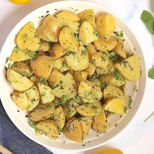 View Recipe HereSyrian-inspired Instant Pot Lemon and Mint Potato Salad is made with fresh, wholesome ingredients only (no mayo and no dairy!). Simply pressure cook potatoes and mix with a lemon, mint and parsley dressing. It's light, refreshing, and perfect for summer dinners and barbecues!