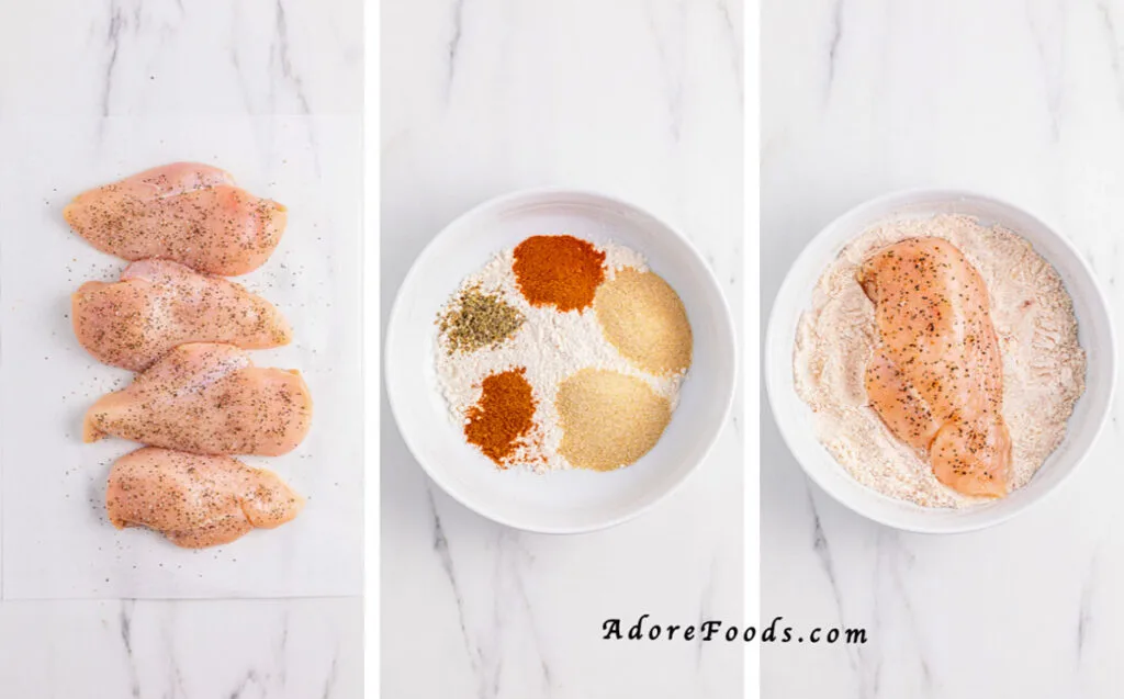 Dredge: Dredge each chicken breast in the seasoned flour mixture, coating well on both sides.