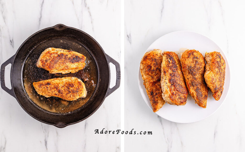 Sear the Chicken: Heat oil in a large skillet over medium-high heat. Once hot, add the chicken and sear each side for about 5 minutes until golden. It doesn’t need to cook through yet. Work in batches if needed. Set seared chicken aside on a plate.