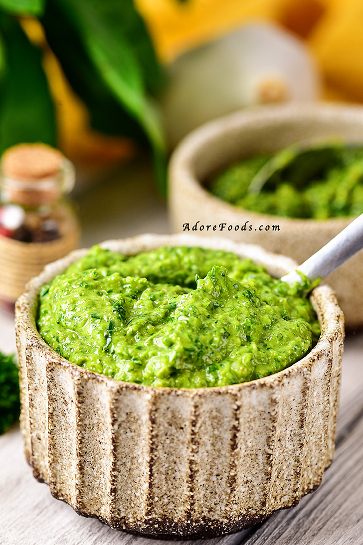 The sauce can be made in two ways – in a mortar